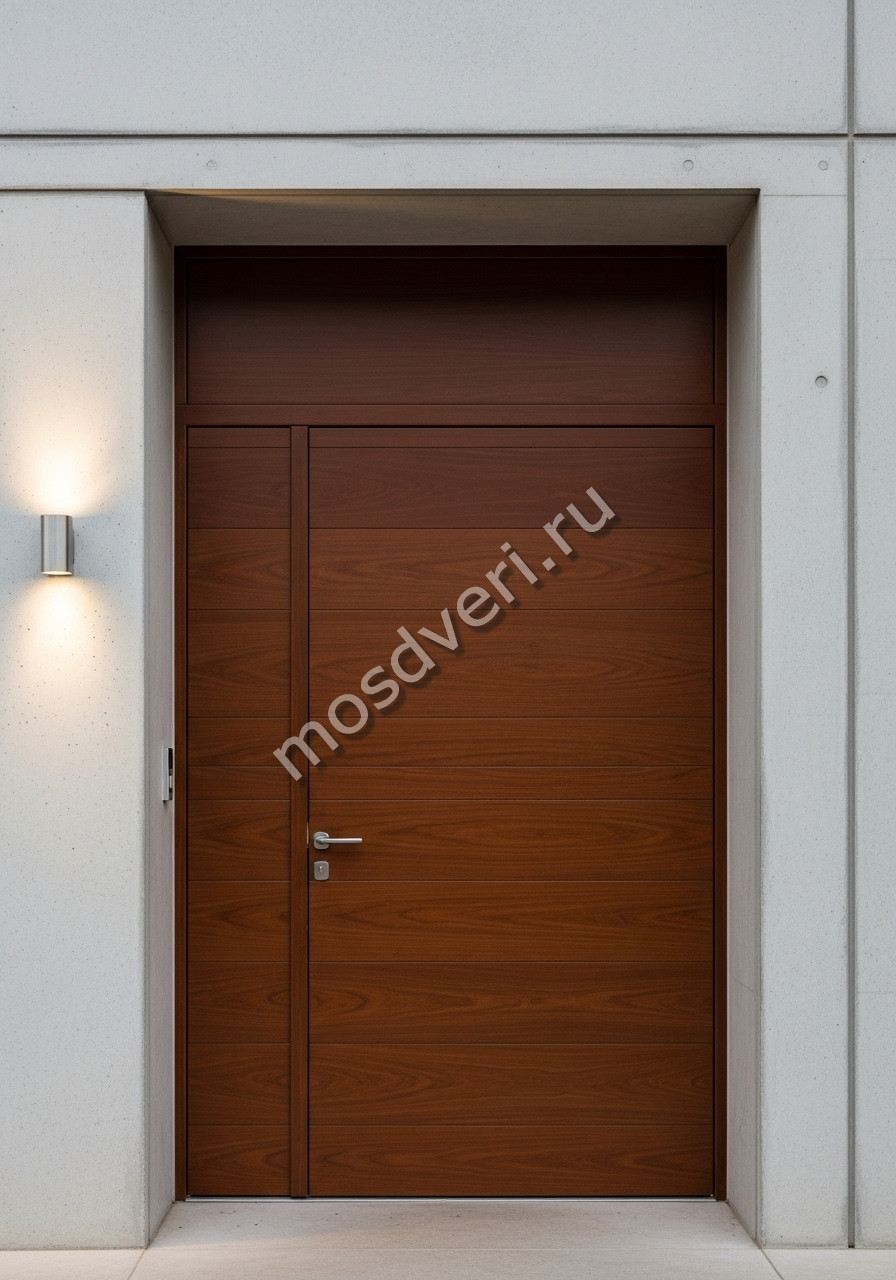 Большая входная дверь в частный дом коричневого цвета — закажите сегодня! Позвоните нам, и получите бесплатную консультацию за несколько минут. Выезд специалиста — когда вам удобно!