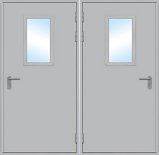 Противопожарная дверь серого цвета с прямоугольным стеклом в Бабаюрте